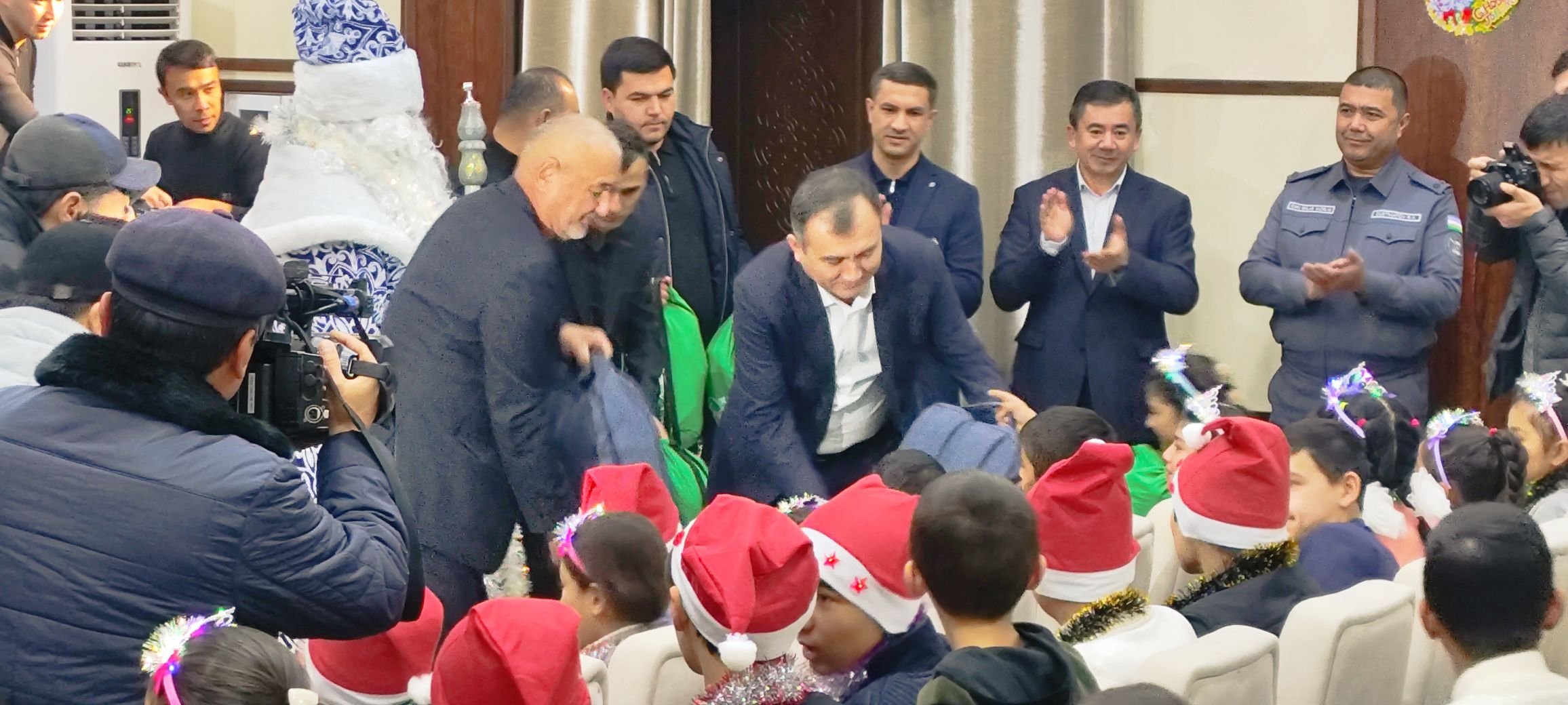 25 декабрь 2024 Qashqadaryo viloyati hokimi Murodjon Azimov Teatrimizga tashrif buyurgan bolajonlarga sovg?alar ulashdilar. Qashqadaryo viloyati hokimi Murodjon Azimov Teatrimizga tashrif buyurgan bolajonlarga sovg?alar ulashdilar.